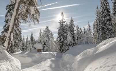Wer es übrigens (noch) nicht ganz so weit mag, sucht sich sein ganz per sönliches Stück vom Glück aus einem der 142 Kilometer langen geräumten und beschilderten Winterwanderwege der Region. Ganz ohne Stress und vor allem ganz ohne den Anspruch auf sportliche Höchstleistungen. Zwischen tief verschneiten Wäldern, beeindru ckenden Schneewänden und urigen Hütten erwandert man die alpinen Winterwelten. Und vielleicht doch noch ein kleines Stück weiter, als man anfangs vielleicht wollte.