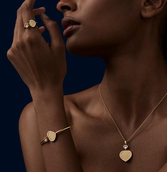 Die Happy-Hearts-Kollektion von Chopard ist mehr als nur Schmuck. Ihr Herz schlägt im Takt mit lebhaft tanzenden Diamanten und ist als Anhänger, Armreif oder Ohrschmuck aus 18 Karat ethischem Gelbgold erhältlich. Die filigran mit Diamanten besetzten Schmuckstücke tragen den vielsagenden Namen „Happy Hearts –Golden Hearts“. Kette mit Anhänger: 4.800 Euro / Ring: 4.290 Euro