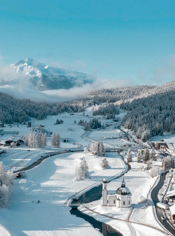 wird im Zuge des Gehens leichter, der tatsächliche Rucksack mit den notwen digen Dingen dagegen nicht. Deshalb sollte man beim Packen Sorgfalt und Zurückhaltung walten lassen. Das Gute: Der Winter-Weitwanderweg ist keine Selbstversorgertour, sondern eine Genusswanderung. Herzliche, traditionelle Gastgeber verzaubern Besucher und Gäste mit köstlichen Schmankerln, die während eindrucks vollen Panoramaaussichten sowohl die Geschmacksknospen als auch die Gefühle zum Tanzen bringen. In den Rucksack muss also wirklich nur das Nötigste. (Tipp: Eine Packliste gibt’s auf www.seefeld.com). Wer sich für eines der Packages entscheidet, das die Region Seefeld bereits fertig geschnürt hat, für den ist sogar ein eigener Ge päckservice inklusive.