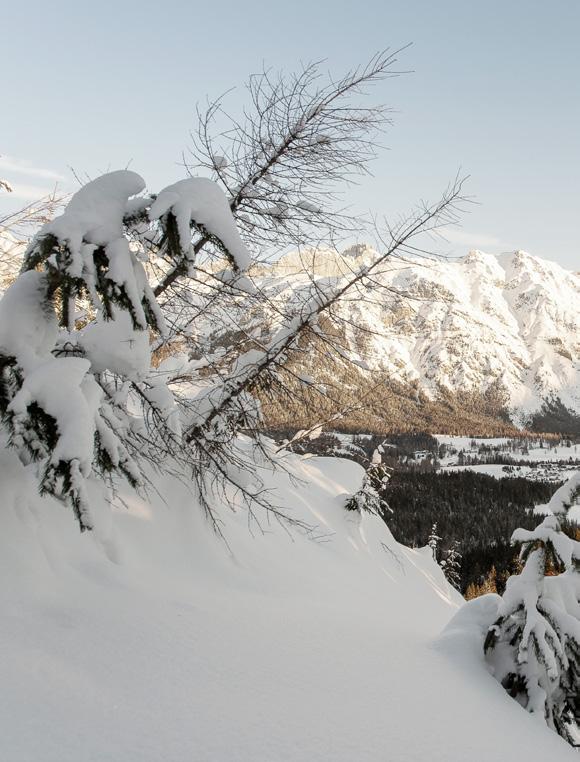 er Winter hat seine ganz eigene Ruhe. Wenn man möchte, lässt sich das rational-physikalisch erklären, denn die luftigen Schneeflo cken verlangsamen die Schallwellen in der Luft, am Boden werden sie weniger reflektiert, sondern im wahrsten Sinne teilweise verschluckt. Man kann diese Ruhe aber auch einfach spüren. Im winterlichen Gaistal zum Beispiel.