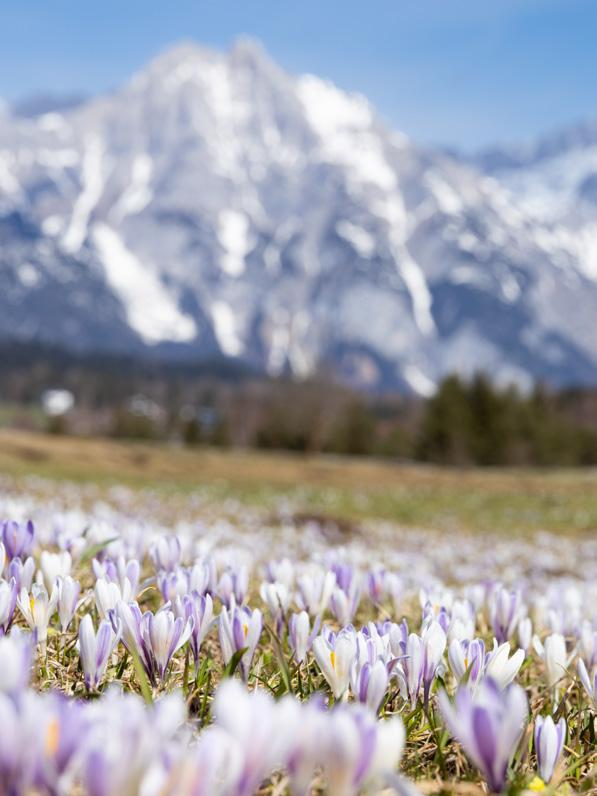 chen, genussvollen, vielfältigen und bunten Möglichkeiten hat. Und wer weiß, vielleicht entdecken Sie bei einem Frühjahrsaufenthalt eines dieser farbenfrohen Fleckchen selbst beim Streifzug durch die Region –zum Beispiel bei den traditionellen Leutascher Bergfrühlingstagen, die im Juni zu den Highlights der Wander saison zählen.