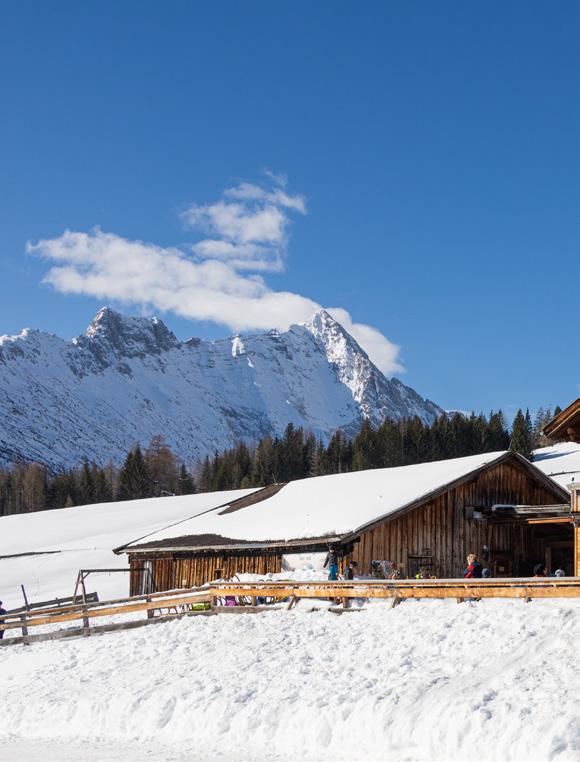 The Hämmermoosalm and Gaistalalm are also open in winter and are rewarding destina tions. While you can reach the Hämmermoosalm in about an hour’s walk, it takes about half an hour longer to reach the Gaistalalm. The rewards are breathtaking panoramic views which demonstrate