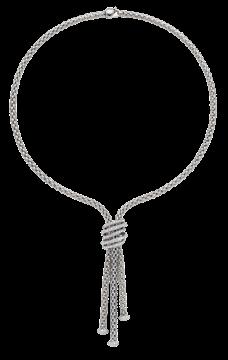 Flexibles Armband aus Weißgold aus der Kollektion „Mia Luce“ um 15.830 Euro und Weißgold-Collier „Solo“ um 16.620 Euro aus der italienischen Designschmiede Fope