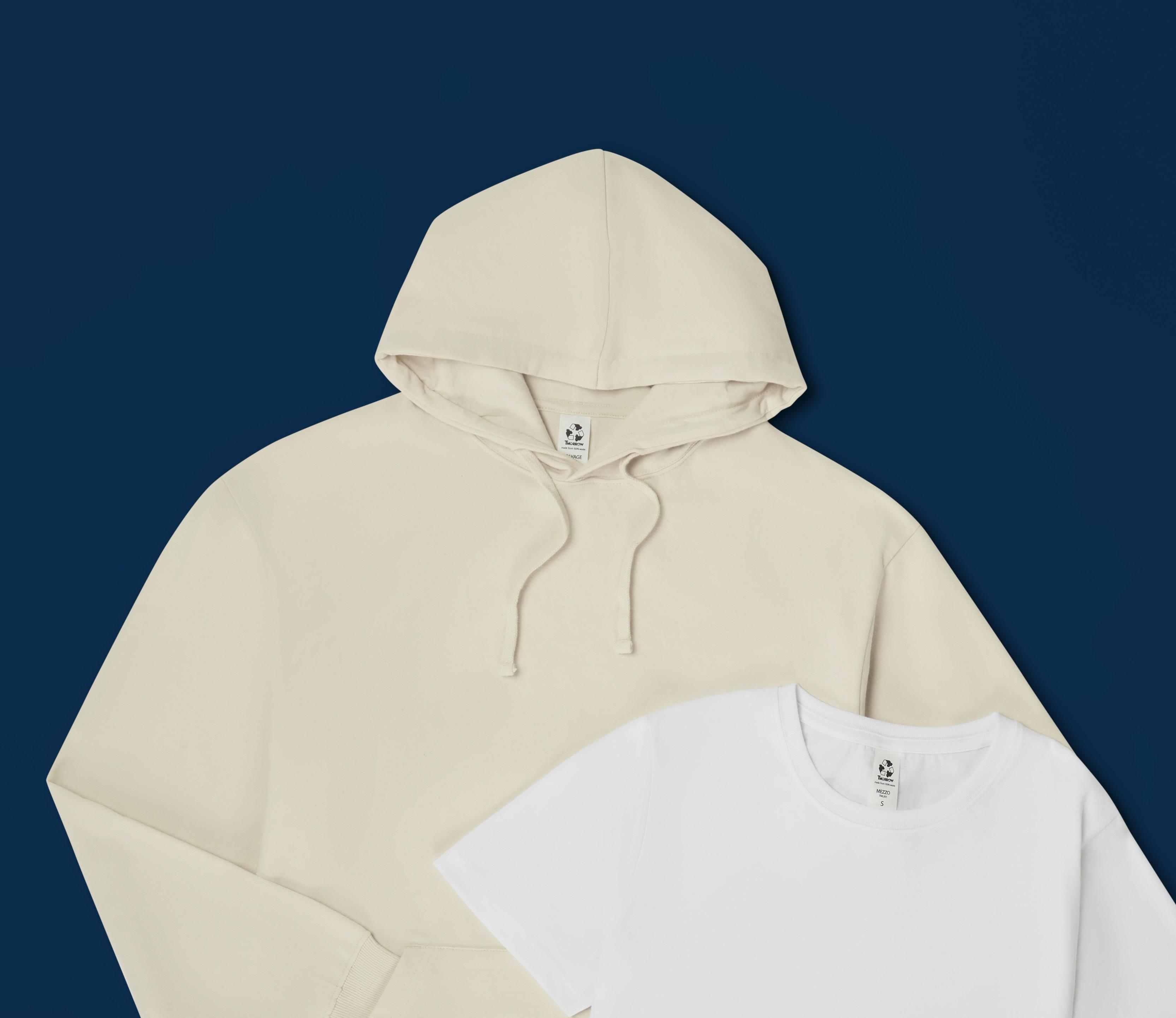 Our recycled apparel is a customisable blank canvas. Whether it’s business branding, official music merchandise or fashion elevated pieces, we offer a range of print and production-ready clothing that doesn’t cost the earth.