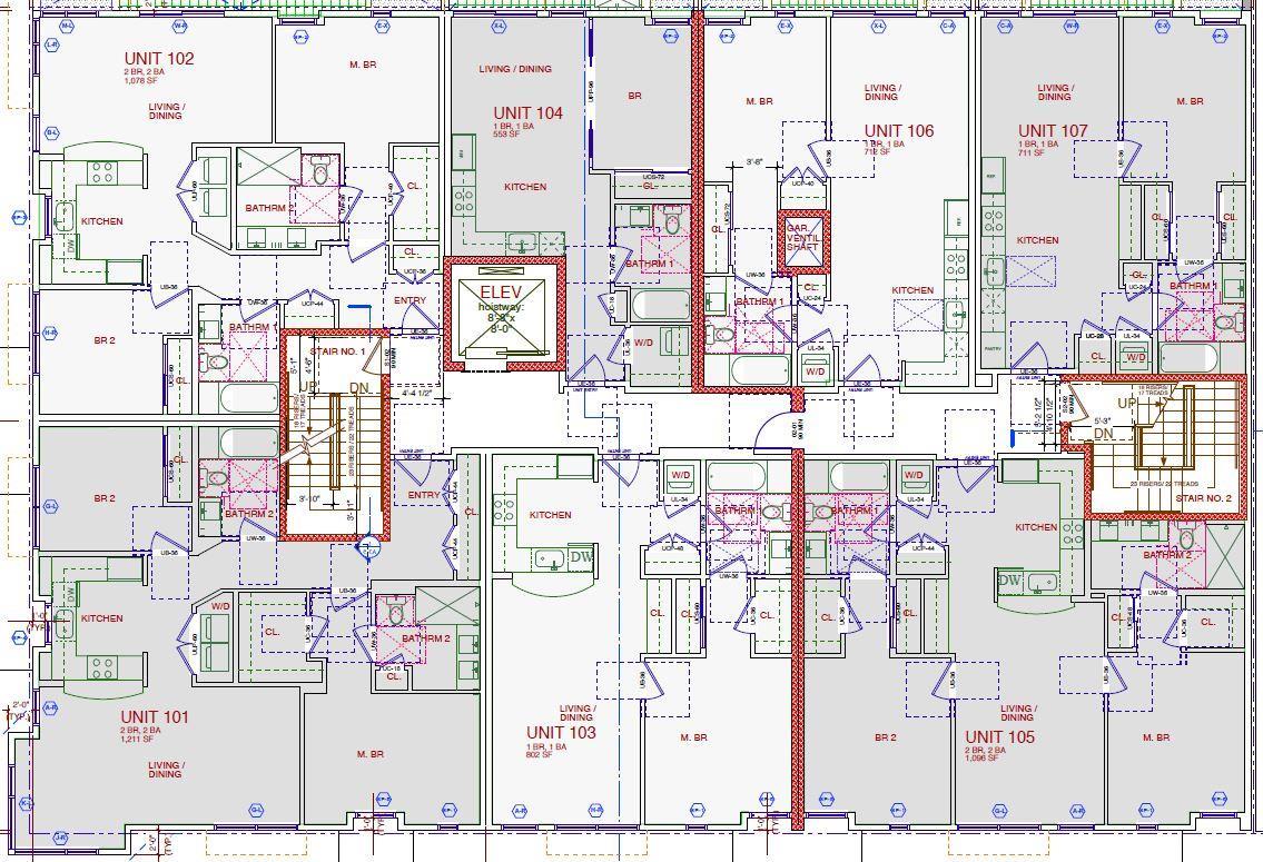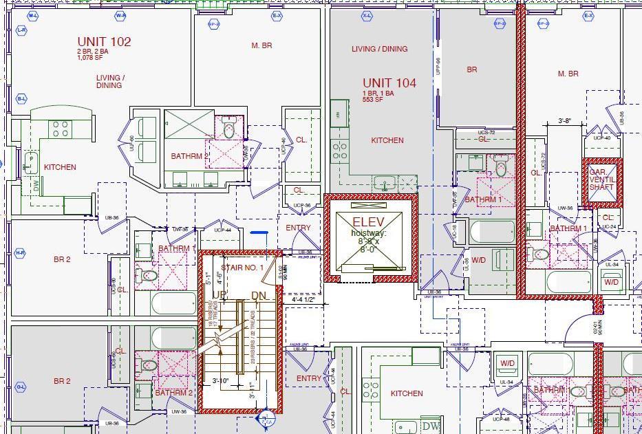 198 Valencia Street - Design Development on floor plans, elevations, building sections with refinements to individual units, adjusting baths to conform to Chapter IIB dimensional tolerances.