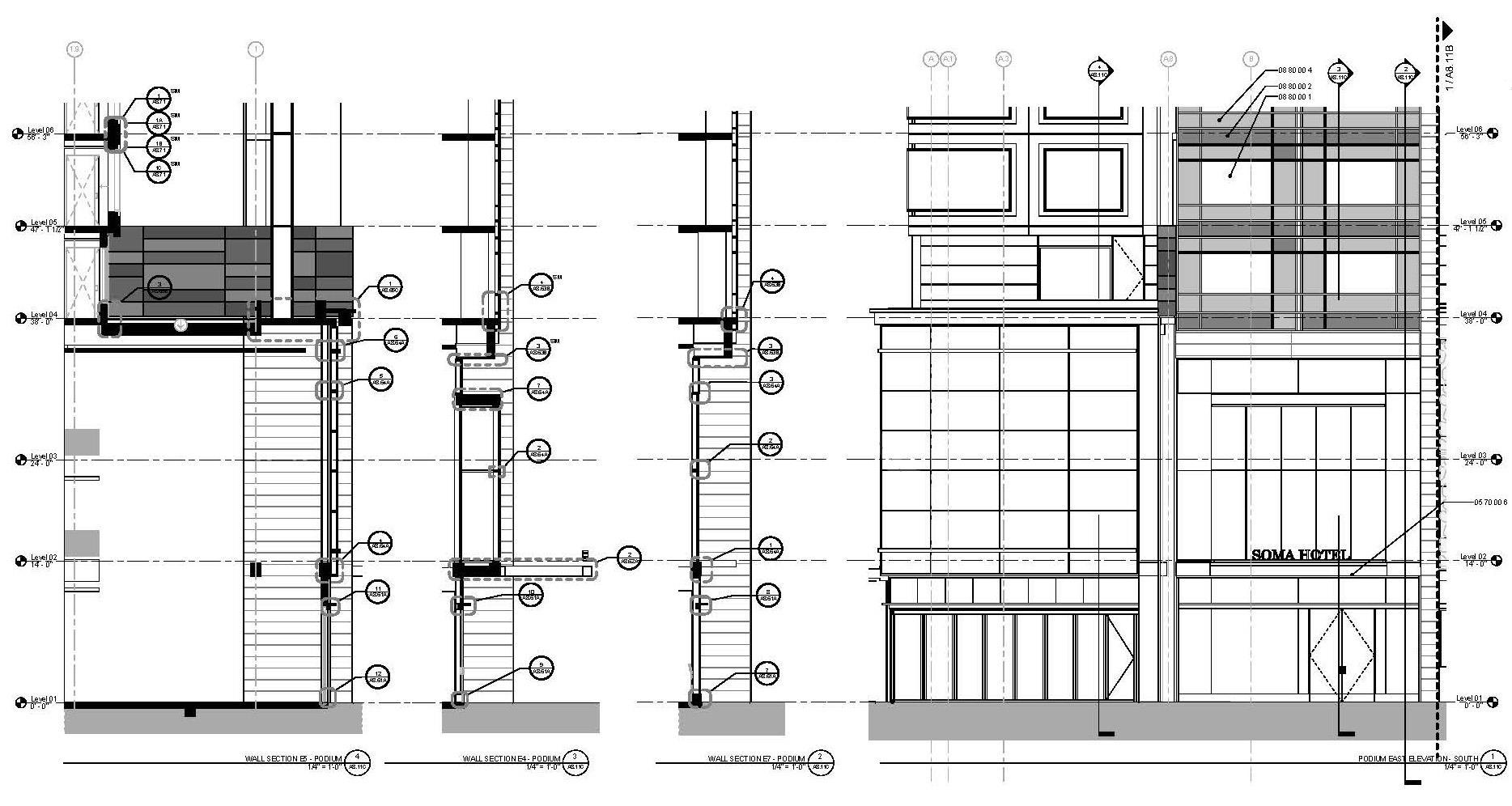 Senior Consulting Architect providing all significant details for Santa Clara Square/ Multi-Family/ 300 unit complex, Type 3 construction type. Details - floor ceiling assemblies, seismic details, roof and and building envelope details.