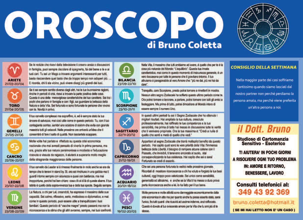 AVVISO AI LETTORI: L Eco di Piacenza offre esclusivamente un servizio, non riceve compensi nelle contrattazioni, non effettua commerci, non è responsabile per la qualità provenienza e veridicità delle inserzioni L'editore de L Eco di Piacenza si riserva il diritto di modificare, rifiutare o sospendere un'inserzione a proprio insindacabile giudizio L’Editore ha la facoltà di abbreviare in modo intelligibile talune parole e di variare la forma del testo L Editore non è tenuto a rispettare prescrizioni di data, periodicità o collocamento in qualunque ordine, anche consuetudinario, né ad ammettere l’esclusione di giorni e neppure le sospensioni o sostituzioni L Editore non risponde per eventuali ritardi o perdite, causati dalla non pubblicazione dell’inserzione, per qualsiasi motivo Non è neppure responsabili per eventuali errori di stampa Gli inserzionisti dovranno rifondere l Editore ogni spesa eventualmente da esso sopportata in seguito a malintesi, dichiarazioni, violazioni di diritti ecc a causa dell’annuncio Si precisa che tutte le inserzioni relative a richieste ed offerte di lavoro debbono intendersi riferite a personale sia maschile sia femminile, essendo vietata, ai sensi dell’art 1 legge 9/12/77 n 903 qualsiasi discriminazione fondata sul sesso per quanto riguarda l accesso al lavoro indipendentemente dalle modalità d’assunzione e qualunque sia il settore o il ramo dell’attività È vietata la riproduzione totale o parziale di tutti i testi i disegni le foto riprodotte su questo numero di giornale Manoscritti disegni foto, anche se non pubblicati, non vengono restituiti Tutti i diritti sono riservati