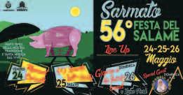 Da venerdì 24 a domenica 26 maggio si t er rà, a Sar mat o, la 56esima edizione della Fest a del Salame Tre gior nat e all’insegna del gust o e del diver timent o tra piatti tipici e musica. Il programma della f est a par t e venerdì 24 con l’aper tura stand alle 19:00 e alle