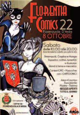 Sabato 8 ottobre torna, a Fioren zuola d’Arda l’appuntamento con “Florentia Comics”, l’evento dedicato a fumetti, cartoon, cosplay, steampunk e manga La giornata, imperdibile per tutti gli ap passionati, proporrà dalle 10 alle 20 per le vie della città aree tematiche adatte ad ogni età Espositori, scrit tori, fumettisti e illustratori saranno presenti per tutta la giornata, mentre non mancheranno stand a tema e mercatini