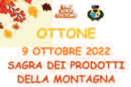 tradizione con la Sagra dei prodotti di monta gna Saranno esposti prodotti tipici del territorio e delle frazioni per tutt a la gior nat a. Si par t e dalle 9 con aper tura delle iscr izioni ed esposi zione, mentre alle 11 a vver rà l’inaugurazione presso i giardini “G. Caproni”. Dalle 14 caldar roste e polenta per tutti, mentre dalle 15:30 si terrà la diver tente Gara di taglio della fetta con la ditta Fontana Dalle 16:45 premiazioni