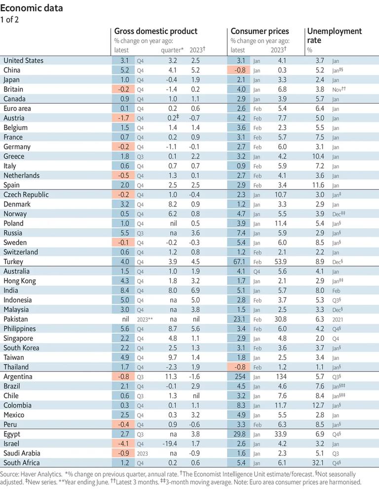 Did you know that key economic data is updated and published each week by The Economist magazine, go to the LLC and pick up the colleges copy and check it out: