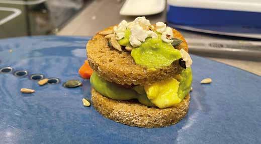 La prima ricetta proposta è un abbinamento tra pesce e frutta, in particolare l’avocado, e diventa un avocado toast rivisitato: uova strapazzate e salmone selvaggio con pane di segale imburrato, un tocco di agrume.
