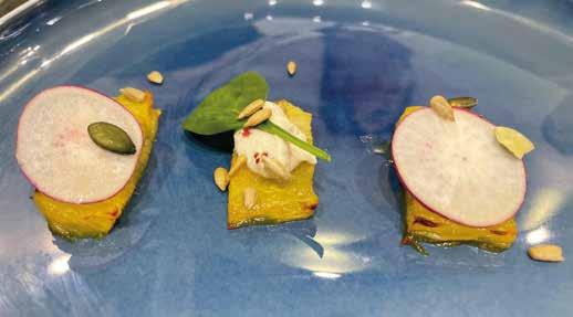 La seconda è a base di carbonaro cucinato come un baccalà mantecato e ananas caramellato per creare un abbinamento molto particolare. Il carbonaro è di fatto un merluzzo ma molto delicato e morbido e con una lenta cottura assorbe tutti i sapori aggiunti in maniera naturale, perfetto per questa ricetta che, con l’ananas caramellato, crea un piacevole contrasto. Il carbonaro è il pesce bianco prediletto dai ristoranti stellati. Anche per lui il plus valore è la naturalità ma a renderlo gastronomicamente pregiato sono le sue carni bianchissime e morbide, tanto da essere conosciuto con il nome di butterfish, pesce burro, perché talmente delicato che quasi si sfoglia pur mantenendo una consistenza piacevolissima.