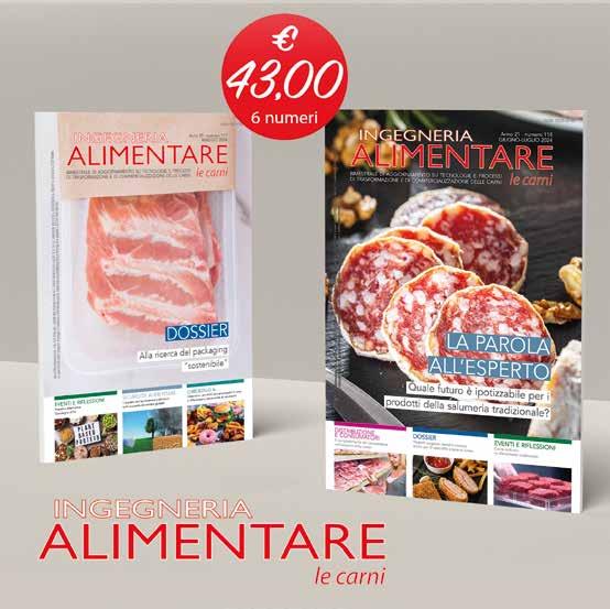 campo alimentare con ampio seguito nel settore industria e artigianato; ricordiamo solo le pubblicazioni attualmente più diffuse – Ingegneria Alimentare e iMEAT Giornale – ma potremmo ricordare pubblicazioni che restano nel cassetto e nel ricordo dei lettori, come Qualità&Sicurezza Alimentare, Cibi Pronti, il Glossario Meat Technology ed altri volumi che tuttora riscuotono apprezzamento per la competenza e profondità di contenuti a livello scientifico e divulgativo, strumenti e testi indispensabili per coloro che lavorano nel campo dell’alimentazione a ogni livello.
