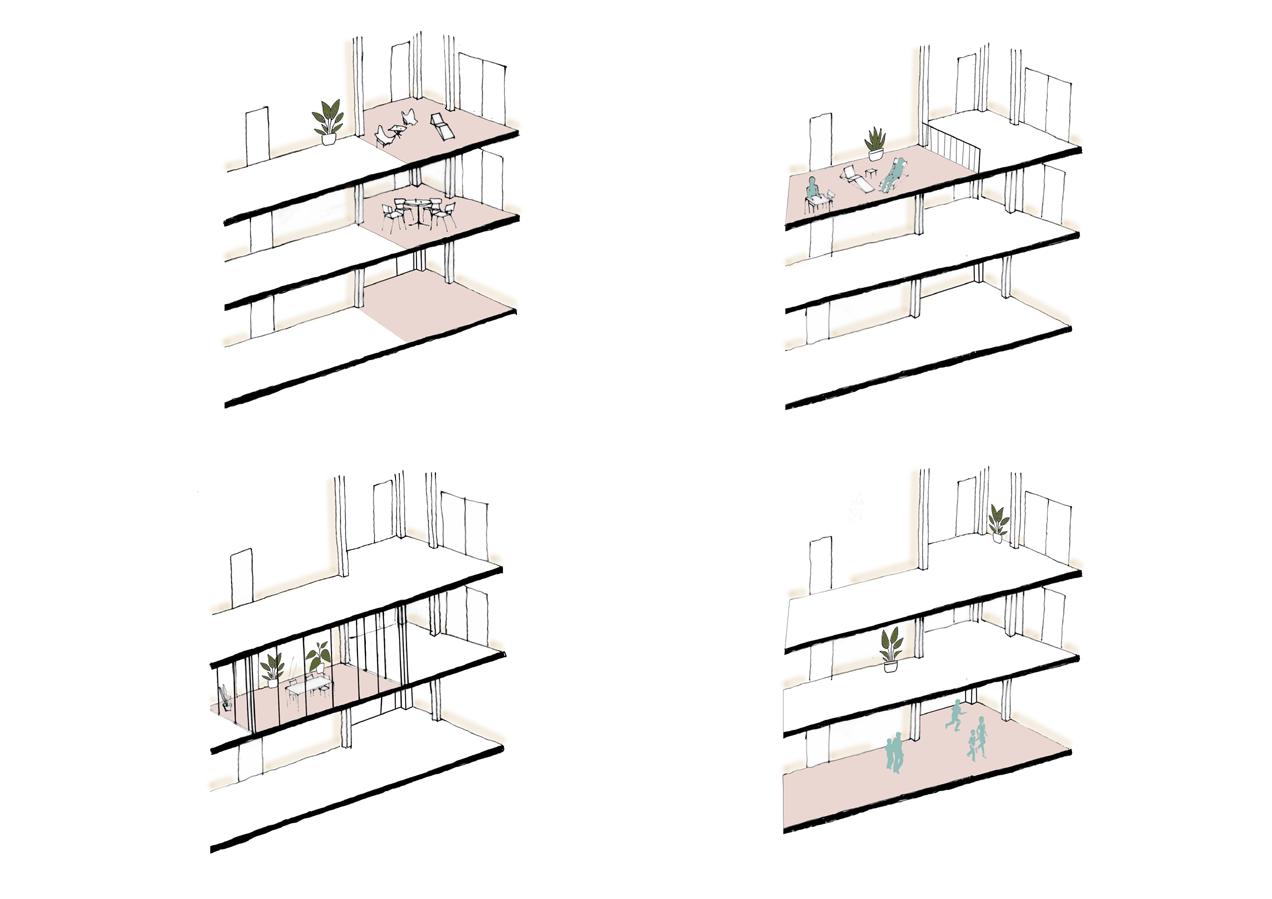 L’agence cherche pour chaque projet à créer des espaces où l’activité humaine s’épanouit, et où l’architecture assure le bien-être de chacun.e.