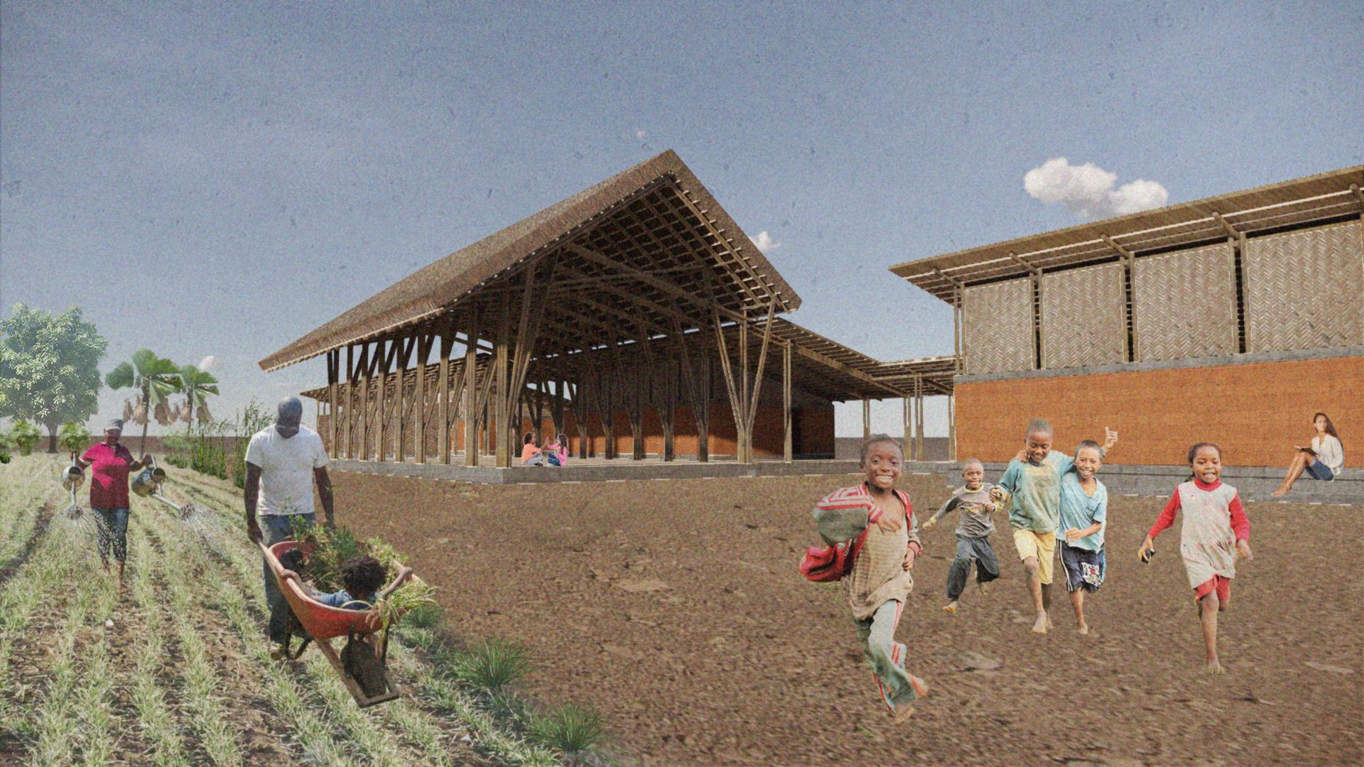 Nous avons saisi l’opportunité du projet pour nous questionner sur notre rôle et notre légitimité dans l’acte de construire à Madagascar. Afin d’éviter une architecture interventionniste, nous avons voulu nous servir de la construction comme support d’apprentissage et de pédagogie. Ainsi, nous avons choisi pour le système constructif l’utilisation de bambou et de terre crue. Ces matériaux naturels et biosourcés, présents en quantité sur l’île, sont pour l’heure sous exploités par manque de connaissance. La construction de la halle sert alors au développement de ces filières au sein du village, et donne à voir des techniques de construction nouvelles et traditionnelles. Le chantier, prévu à l’origine pour mai 2022, aurait été l’occasion d’organiser une grande école à ciel ouvert, mêlant architectes, habitants et étudiants du lycée professionnel du village.