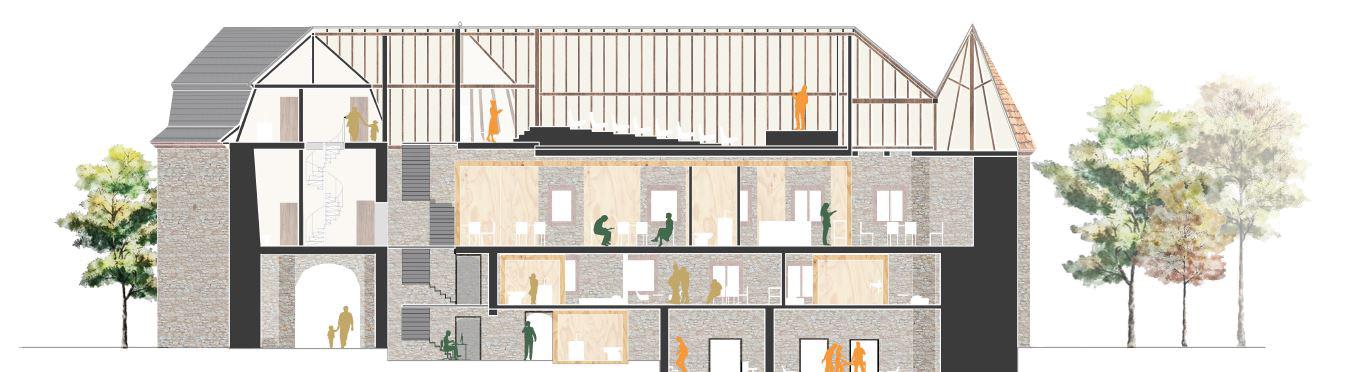 Nous prenons le parti d’une réhabilitation à faible impact environnemental, véritable défi étant donné les contraintes architecturales et thermiques de ce bâti ancien. Pour ce faire, plusieurs choix forts ont été pris :