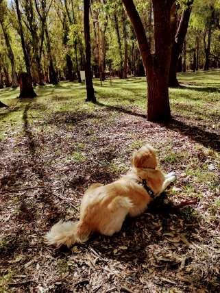 En cuanto Roo me subió al auto y salimos, lo confirmé, Luji y Bongo nos seguían en la camioneta. Cuando llegamos al parque, dejamos el auto en el lugar que siempre lo hacíamos y nos dejaron sueltos. Caminamos juntos sin problema por delante de ellas. Pero yo quería ir al bosque, y ellas se dirigieron en sentido contrario, así que nosotros, las seguimos y terminamos bajo un árbol, en medio del parque con el pasto verde (porque al fin había