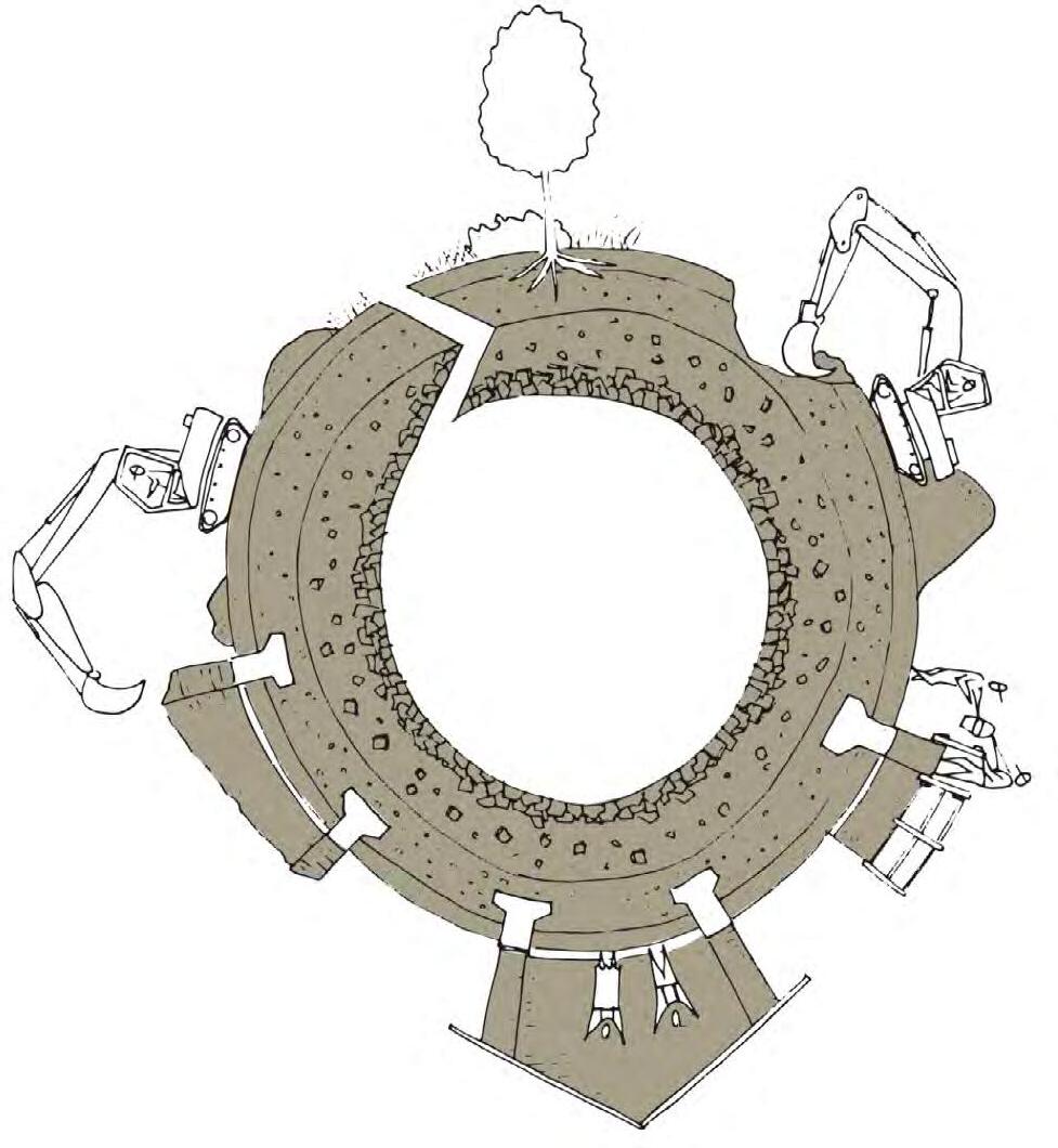 Verwijdering van Léém bouwmaterialen: «Zelfs als alle recyclagemaatregelen worden geïntensiveerd, is het niet altijd mogelijk om resterende leembouwmaterialen terug te brengen in de materiaalkringloop. In dit geval kan de verwijdering ervan als ‘inert afval’ niet worden vermeden.» [10] (p.522) In termen van verwijderingsscenario’s is het informatief om 4 categorieën Léém bouwmaterialen te onderscheiden: