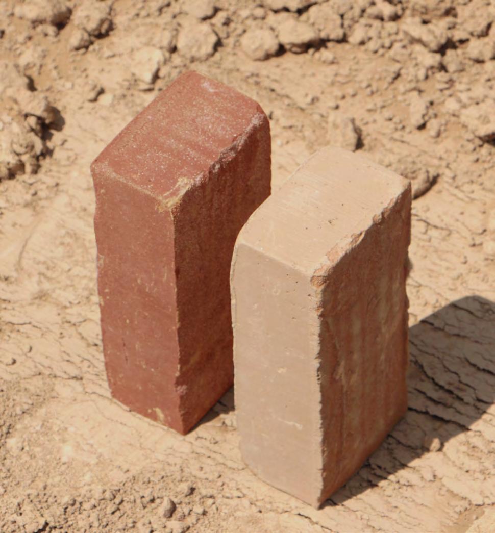 — Cementhoudend: bevat cement bovenop natuurlijke klei, silt, zand en gerecycled beton: Léém Persstenen