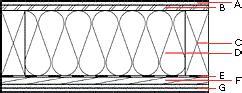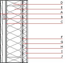 Building material specifications for construction, layer structure (from exterior to interior, dimensions in mm)