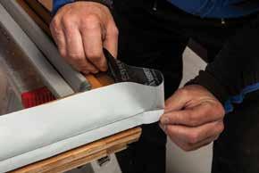 Apply CONTEGA SOLIDO IQ around the corners of the window frame, ensuring there is no tension. Ensure that there are no folds in the outer area of the tape. After sticking, rub the tape firmly into place using the PRESSFIX application tool.