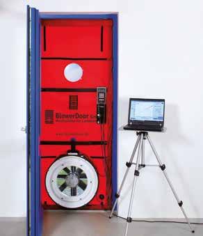 The BlowerDoor procedure is a testing method that creates a differential pressure in the building. This differential pressure allows defects in joints to be identified and rectified. This procedure can also be used to measure the air change rate (n50) in the building.
