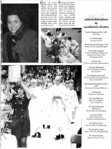 academic deans Brother Raymond Fitz, S.M. President Dr. John Geiger Acting Provost Brother Bernard Ploeger, S.M. Senior VP for Administration Dr. Gordon Sargent VP for Graduate Studies and Research & Dean of the Graduate School FrancesAry VP for University Advancement Thomas Burkhardt VP for Financial Affairs & Treasurer Dr. William Schuerman VP for Student Development & Dean of Students Reverend Christopher Conlon, S.M. Director of Campus Ministry Ted Kissell Director of Athletics Dr. Paul Morman Dean of College of Arts & Sciences Dr. Edward Garten Libraries & Information Technologies Dr. Sam Gould Dean of School of Business Administration Dr. Patricia First Dean of School of Education Dr. Joseph Lestingi Dean of School of Engineering Dr. Francis Conte Dean of School of Law