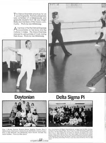 he Dance Ensemble prac tic es for an upcoming recital. The Dance Ensemble was comprised of undergraduate and graduate students from UD and Wright State and members of the Dayton community. Photo by Lisa Distelzweig.