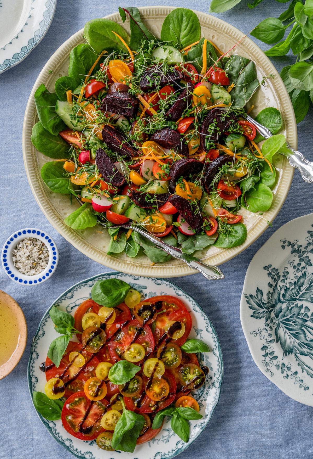 I en plantekasse kan du dyrke det meste! Du kan plante ud planter, der er forspiret indendørs, eller så frø direkte i jorden i det sene forår. Så gerne høje sorter som ærter og bønner sammen med lavere sorter som radiser eller salat. Så sikrer du, at solen når alle planter, samtidig med at du får en herligt varieret og smuk plantekasse. Hurtigtvoksende bladgrøntsager som pluksalat, rucola og spinat kan du så i omgange for at få høst hele sæsonen.