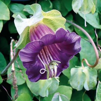 Fantastisk klatreplante med imponerende violette klokkeformede blomster og smukt løv.