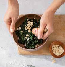 Iniziate dal pesto di cavolo nero: prendete un mortaio o un mixer, inserite le foglie di cavolo nero private del gambo, circa 8 mandorle, abbondante olio e sale a piacere. Frullate bene fino a ottenere una crema, aggiungendo se necessario altro olio.