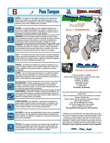 LEO.- Te envuelve una buena onda económica y pronto te llegarán noticias sumamente alentadoras de un negocio emprendido recientemente. Estás en una etapa creativa y debes aprovecharla poniendo a funcionar tus ideas originales para ganar más. VIRGO.- Las influencias positivas de tu signo te ayudarán a recuperarte de alguna dolencia renal o hepática sobre todo si están asociadas a altibajos de la presión arterial, o a problemas nerviosos de ansiedad.