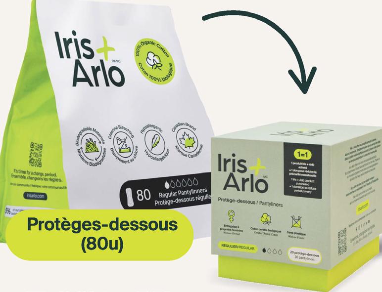 Faites le plein de produits menstruels Iris + Arlo : sains et écologiques, en coton 100% biologique certifié GOTS !