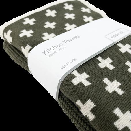 Our current organic cotton range includes: Dishcloths, Kitchen Towels and Barista Cloths, Kitchen Accessories, Hair & Travel Towels, Wash Mitts, Face Cloths & Make Up Remover Pads, Cot Blankets & Throws