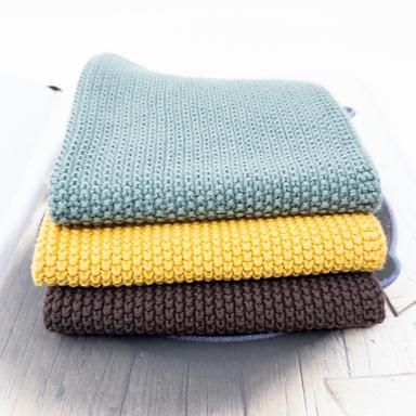 Being a looser weave, they hold less water and are easier to squeeze out. Making them faster drying and ideal in the cooler months.