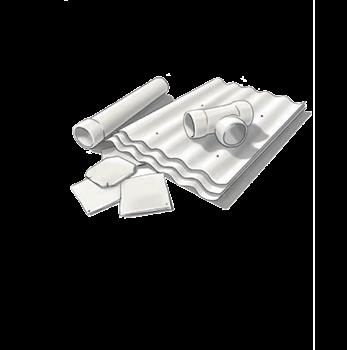 Hechtgebonden asbest zoals golfplaten of leien. Max. 3,10 m groot en 1,10 m breed. Max. 8 asbestzakken/jaar.