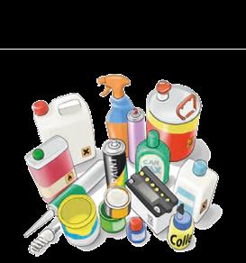 Basen, batterijen (www.bebat.be), bestrijdingsmiddelen, frituurolie of –vet, fondue-olie (www.valorfrit. be), gevaarlijk huishoudelijk afval met gemengde samenstelling, (verpakkingen van) giftige of bijtende producten, harsen en lijmen, lachgaspatronen, injectienaalden (in naaldcontainer), inkten en verven, kaarsen, motorolie (www.valorlub.be), röntgenfoto’s, schoonmaakmiddelen, solventen, stoffen en producten met kwik, zuren ...