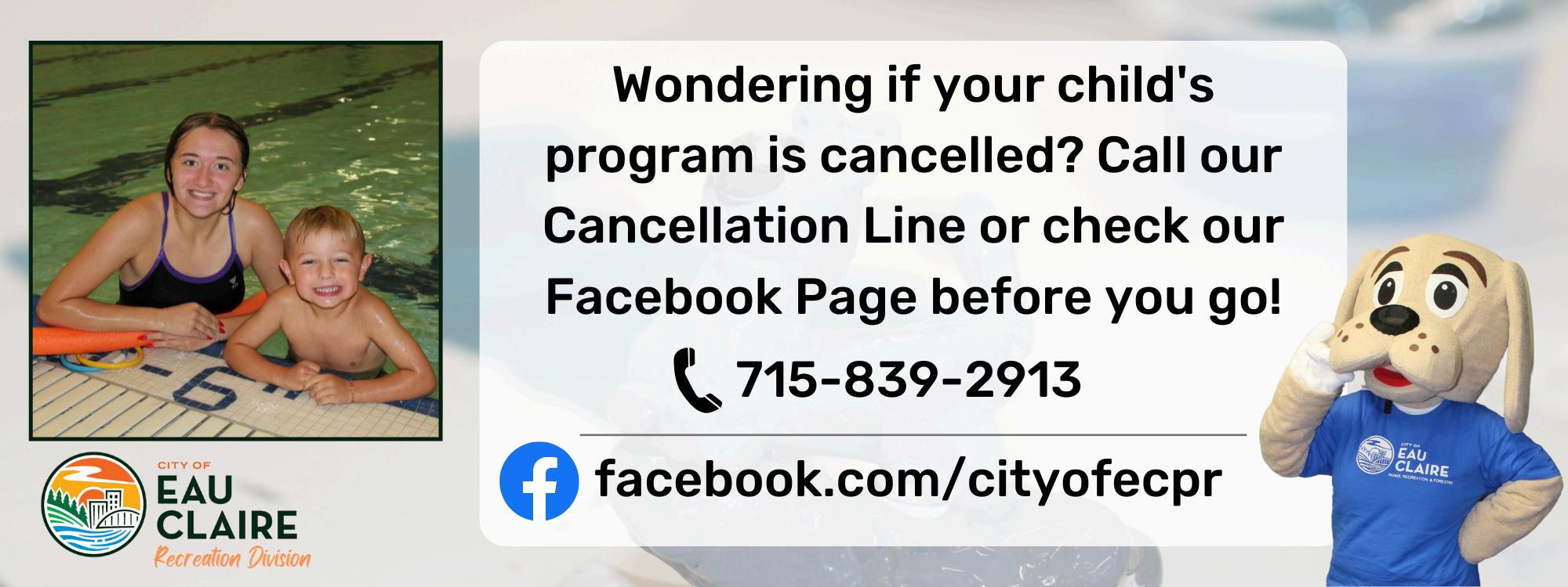 Eau Claire Parks and Recreation reserves the right to alter/change/adjust schedules as necessary due to team registrations, inclement weather, and any other circumstances that arise unexpectedly To learn if there are any cancellations please call our Parks and Recreation Cancellation Line at (715) 839-2913 It is our goal to provide safe and inclusive activities and facilities at all times Improper conduct including but not limited to inappropriate language, inappropriate physical contact, abuse of staff or other patrons, theft, vandalism, or any other illegal activities are not tolerated. In consideration of the safety and security of our staff and patrons, ECPRF reserves the right to remove anyone from current or future participation in or attendance at ECPRF activities or facilities in the event of improper conduct, including involving ECPD if necessary.