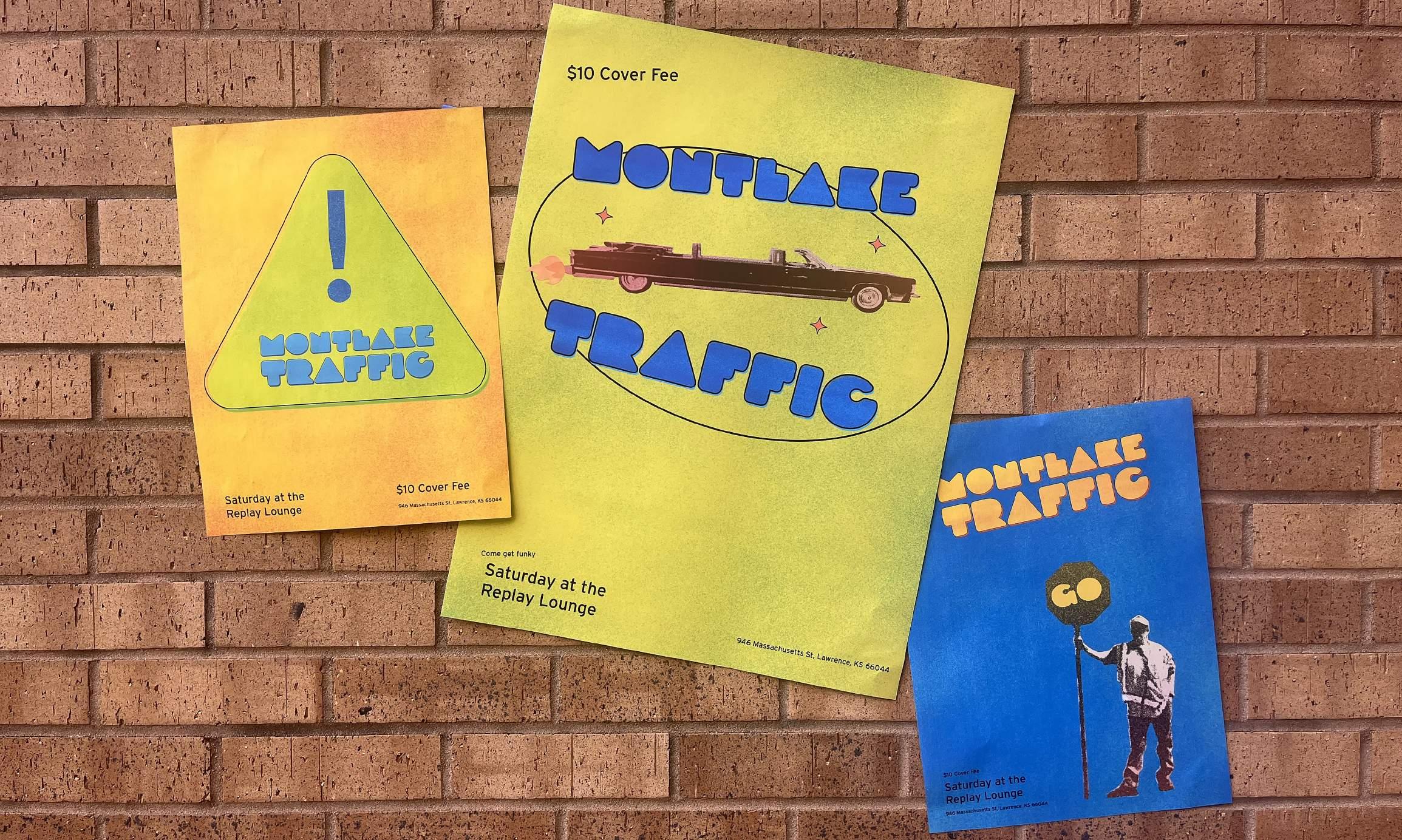Montlake Traffic is a new indie band that is just starting near Mont Lake Washington. I was commissioned to help them make some merch that they could make cheaply and simply. Montlake is a fun unserious band that is comprised of a group of friends. The branding reflects the sense of silliness that the band members bring to their music.