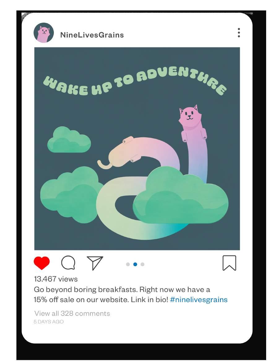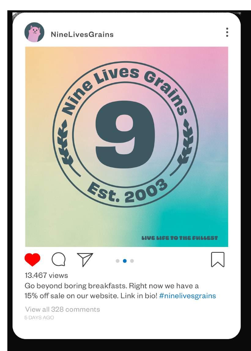 We believe that life is too short for a boring breakfast. Start your day off right with a mini adventure each morning. Nine Lives Grains is a cereal brand for adults that focuses on a high quality experience with unique flavors and ingredients. Don’t settle for a boring breakfast when you could open up an adventure each morning.
