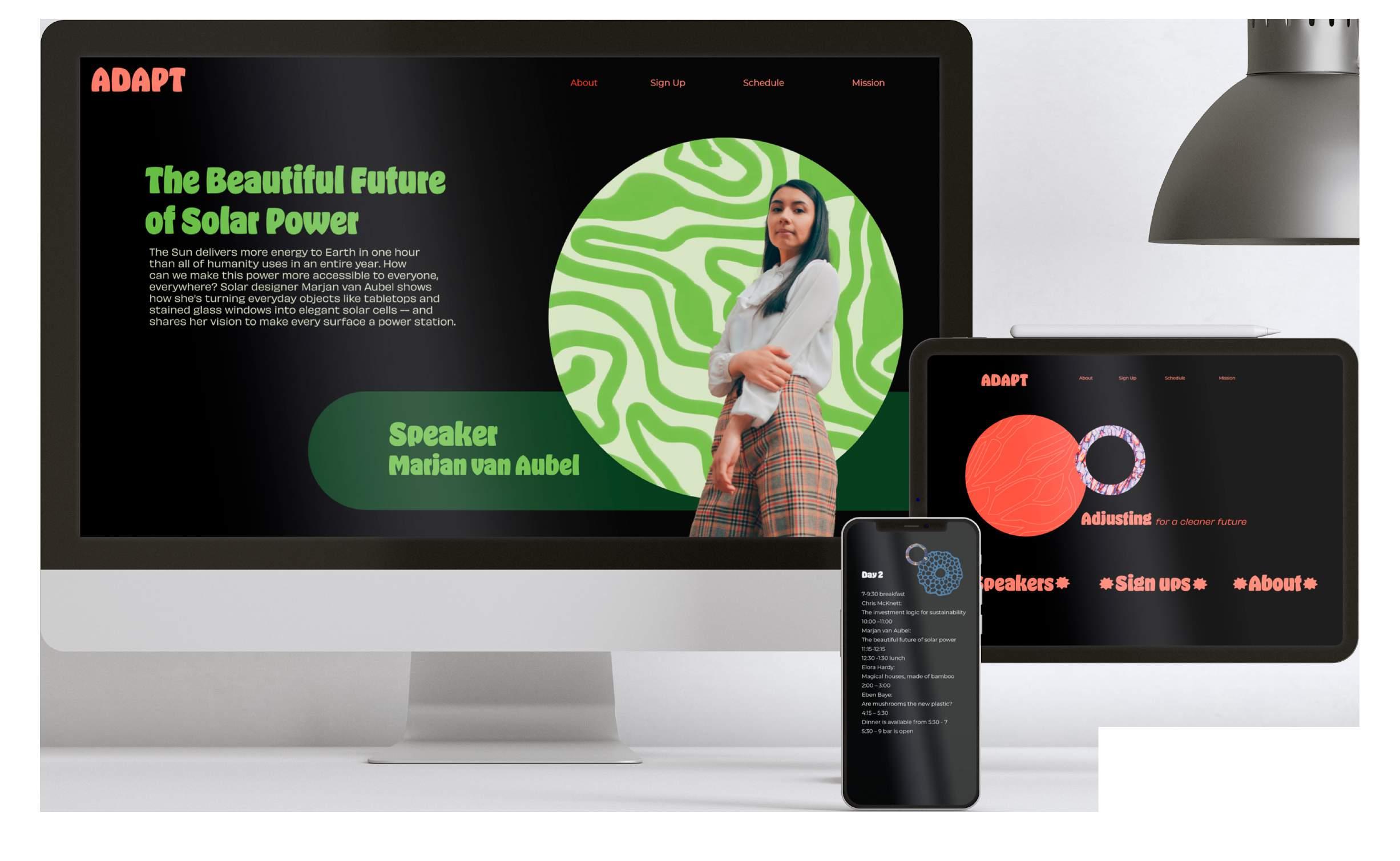 Adapt is a conference that is all about inspiring people from many varied different professional fields to collaborate to solve some of the pressing sustainability issues that we are facing today. Celebrating the innovative ideas that innovators have come up with and inspiring the next big idea is the goal of this 3 day conference. Photoshop. Illustrator. Indesign.