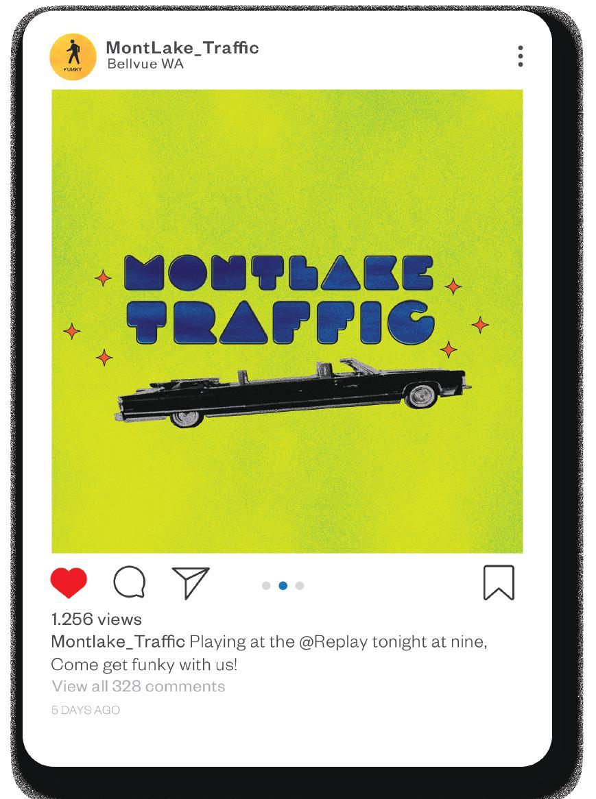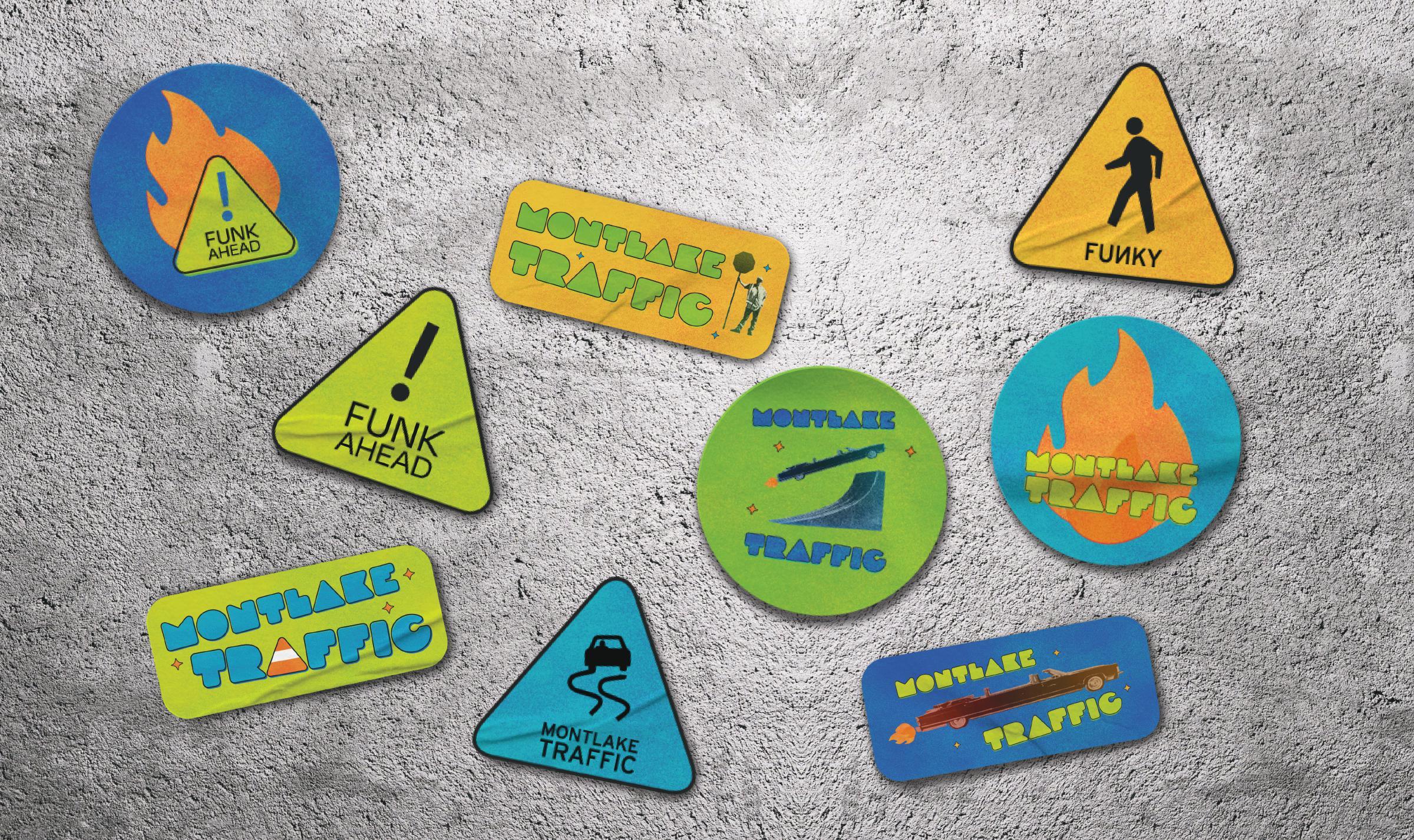 Montlake Traffic is a new indie band that is just starting near Mont Lake Washington. I was commissioned to help them make some merch that they could make cheaply and simply. Montlake is a fun unserious band that is comprised of a group of friends. The branding reflects the sense of silliness that the band members bring to their music.