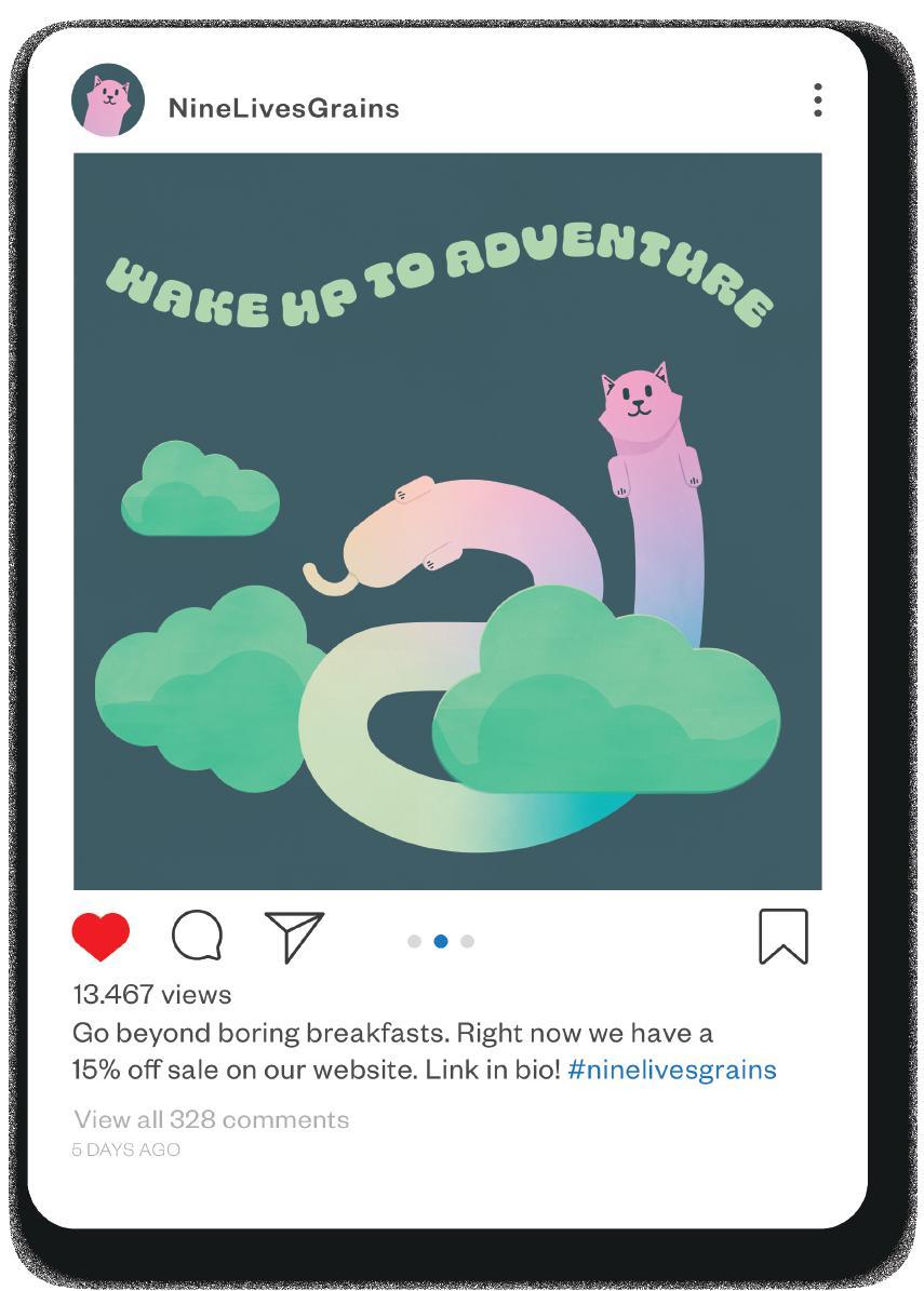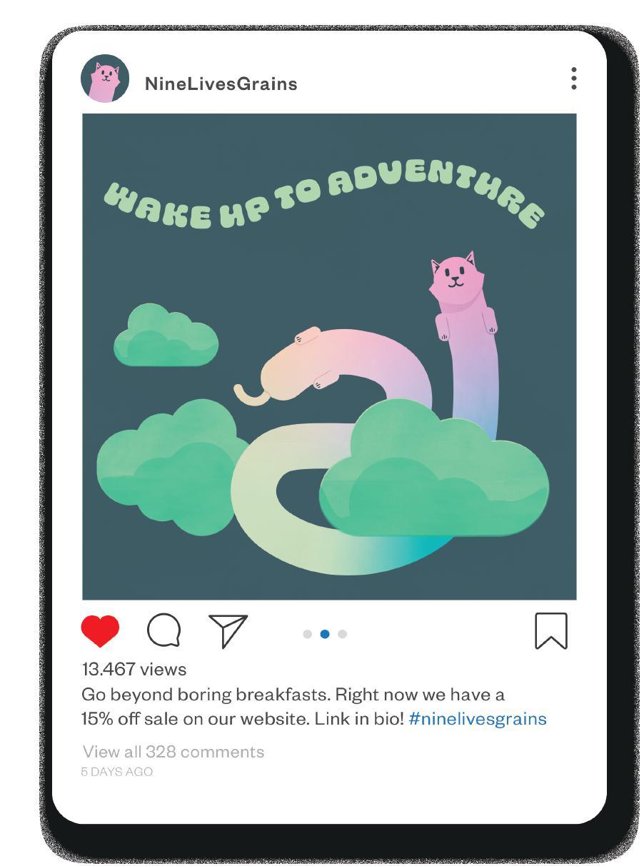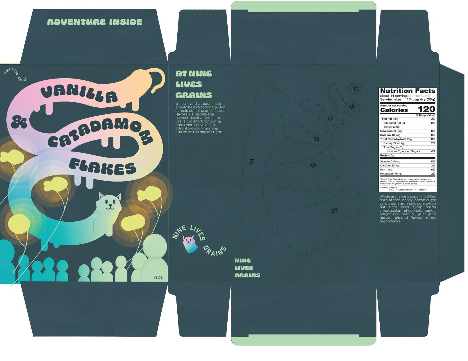 We believe that life is too short for a boring breakfast. Start your day off right with a mini advent ure each morning. Nine Lives Grains is a cereal brand for adults that focuses on a high quality experience with unique flavors and ingredients. Don’t settle for a boring breakfast when you could open up an adventure each morning.