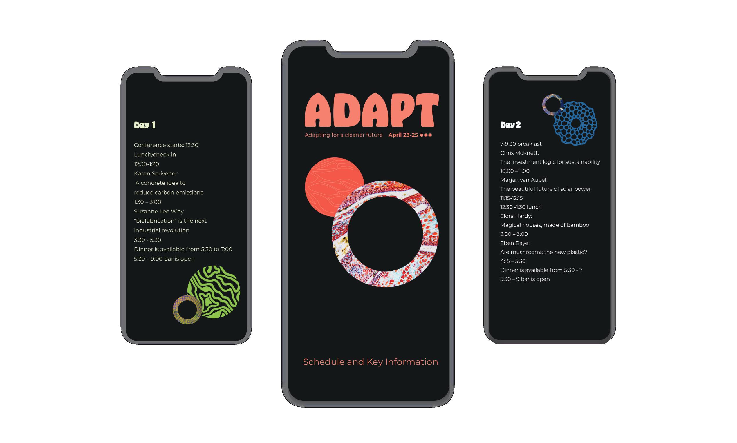 Adapt is a conference that is all about inspiring people from many varied different professional fields to collaborate to solve some of the pressing sustainability issues that we are facing today. Celebrating the innovative ideas that innovators have come up with and inspiring the next big idea is the goal of this 3 day conference.