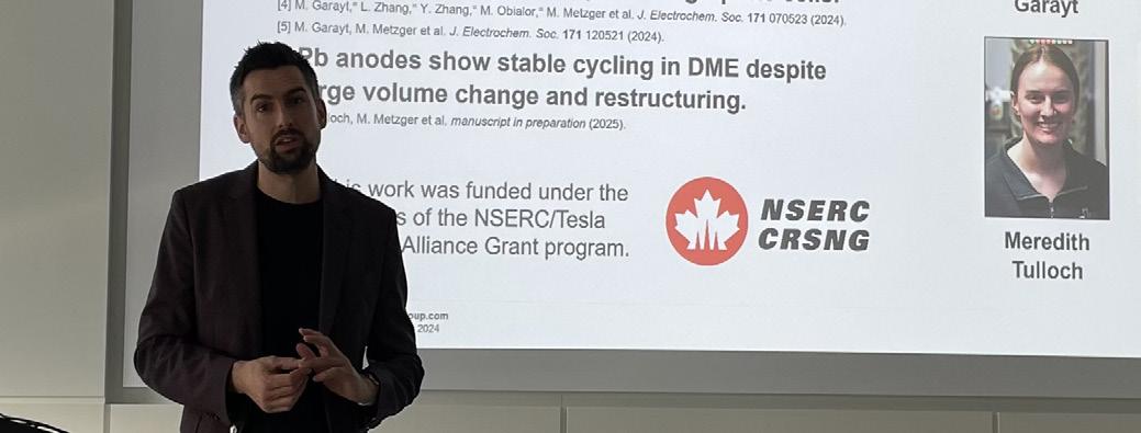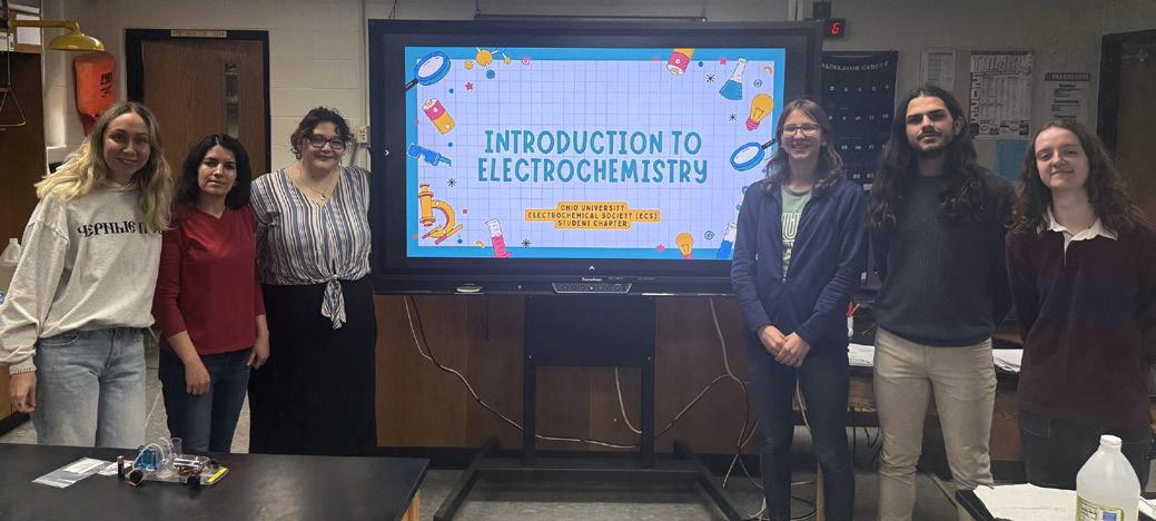Much of the chapter’s efforts focused on connecting U-M electrochemistry students with industry partners, officially partnering with the University of Michigan Engineering Career Resource Center to help strengthen industry engagement and create professional development opportunities. The chapter co-hosted Lunch-n-Learn events with the U-M Electric Vehicle Center. “Leaders in Battery Industry” featured Dr. Jamie Weaver, National Institute of Standards and Technology; Dr. Thibaut Dussart, Saft; Dr. Kumar Bugga, Lyten; Dr. Hang Lau, TA Instruments; and Prof. Feifei Shi, The Pennsylvania State University, sharing their perspectives on current trends in battery technology and their industry career paths. The chapter hosted social events for electrochemists, including Coffee and Donuts in collaboration with Women and Gender Minorities in Chemistry (WiC+). The academic year closed on a high note with the End of Year Volleyball Social, strengthening the oncampus community of electrochemists.