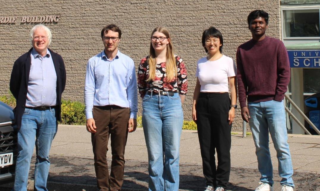 From left to right: ECS University of St Andrews Student Chapter Academic Faculty Supervisor Prof. John T. S. Irvine and chapter officers President Andrea Veronese, Treasurer Alexandra Knebel, Secretary Yuan Liao, and Vice President Manikandan Chithravelu, with a hydrogen-powered fuel cell car.