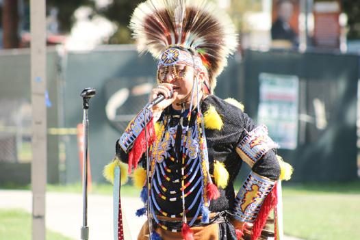 ECC fine arts alumnus Michael Tiger, who is a firstgeneration Native dancer and also a singer born in the Los Angeles area, performed a fancy war dance.