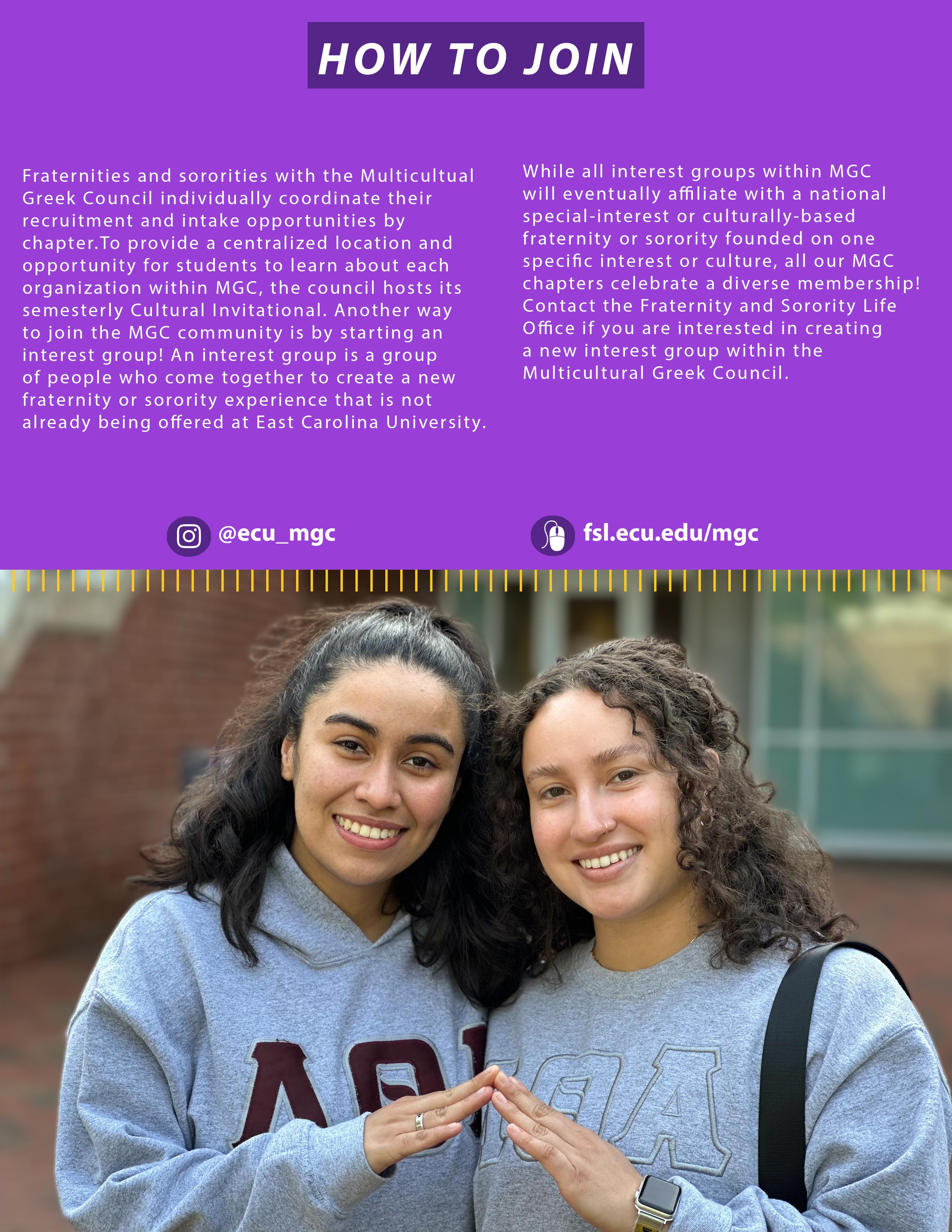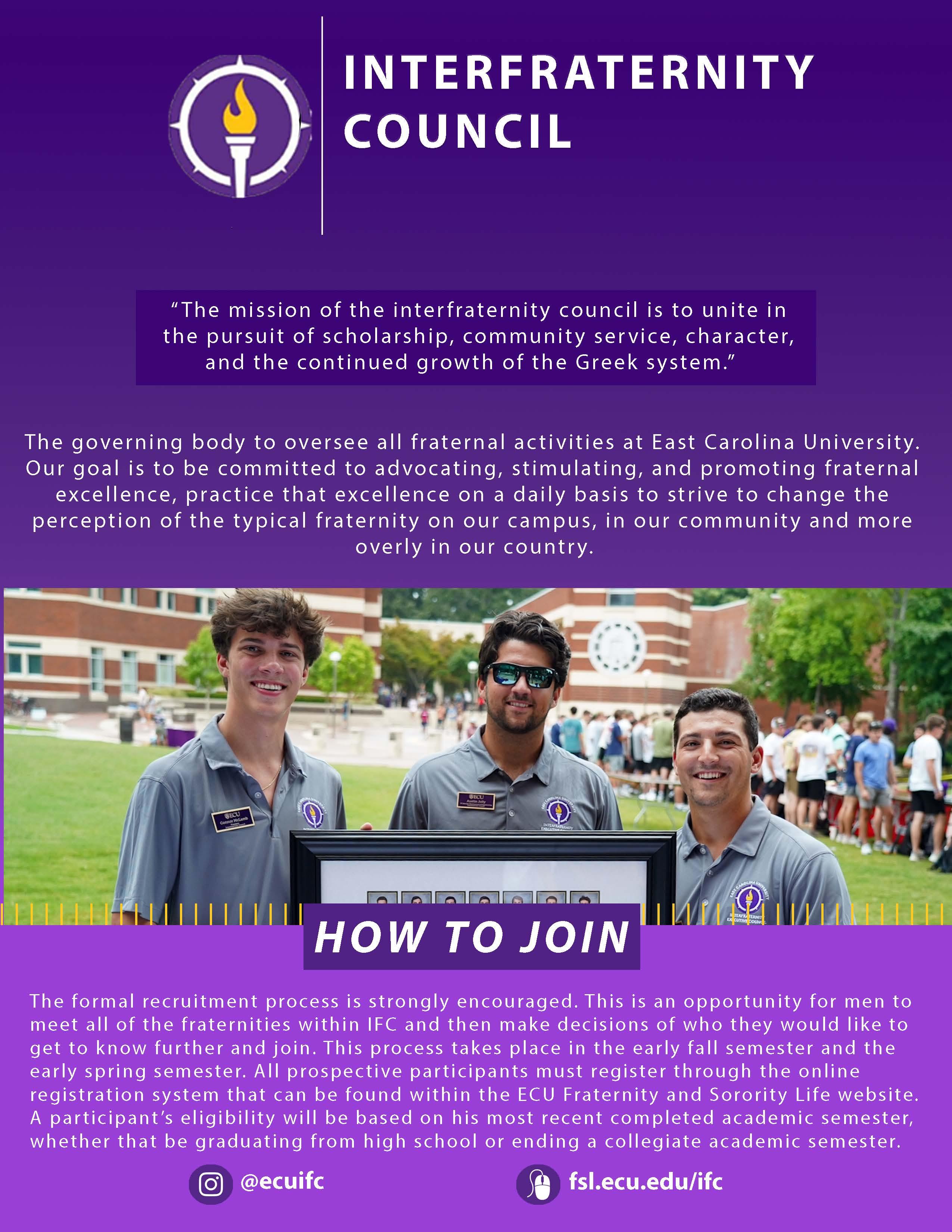 Individualsinterestedin particpating in recruitment or intake must be full-time undergraduate students at ECU. Each chapter requires a minimum grade point average forjoining. Additionally, eachcouncil has a minimum grade point average requirement for participation in recruitment. More details can be found in the detailedcouncil information.