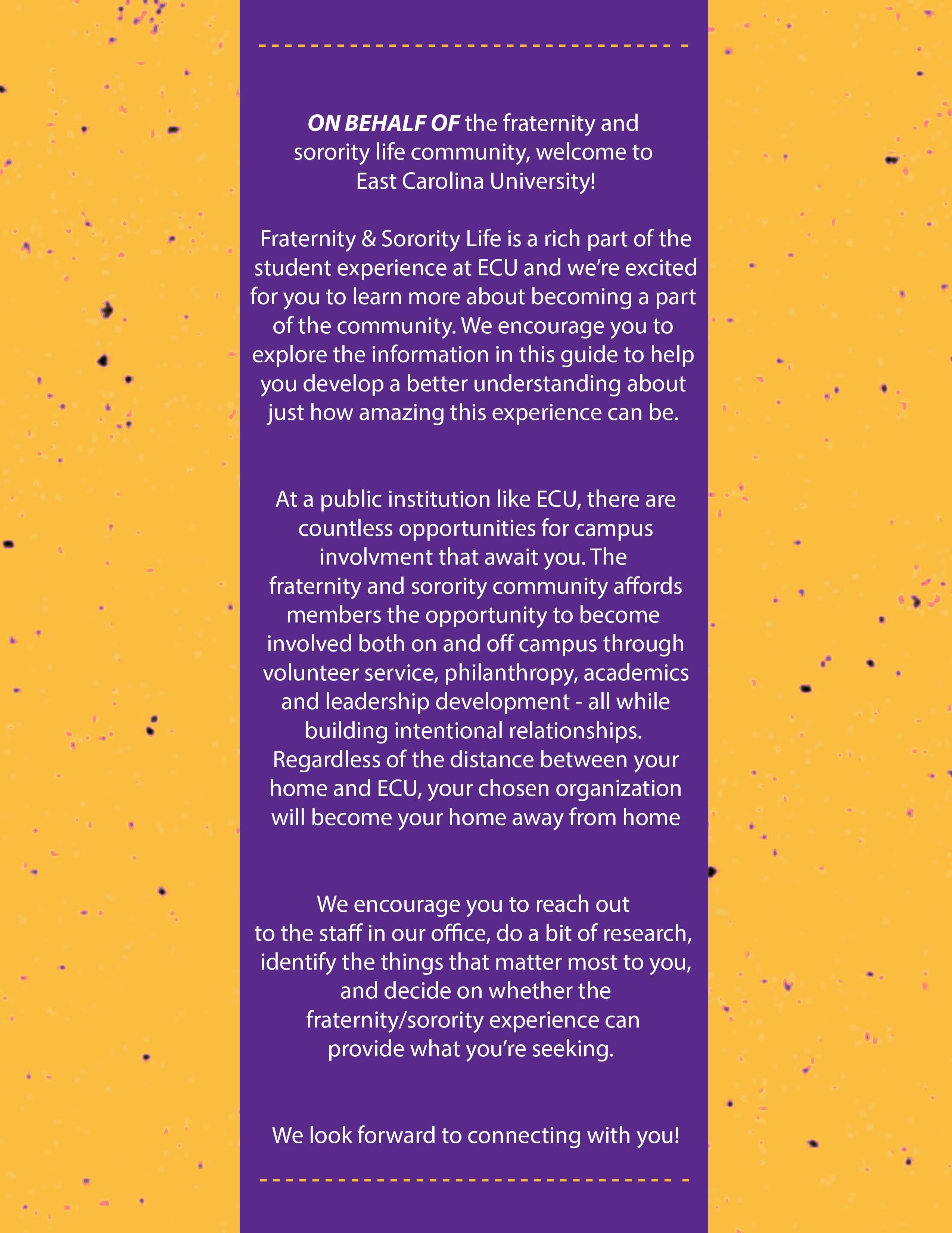 The number one goal for your student at ECU, should be to graduate. Membership in a fraternity or sorority can help your students achieve this as long as they work hard and commit themselves to being successful in the classroom. Most fraternities/sororities not only have a minimum GPA requirement to join but also to remain a member. Since obtaining a degree is the number one reason for attending college, our organizations work to help make sure members are successful in the classroom.